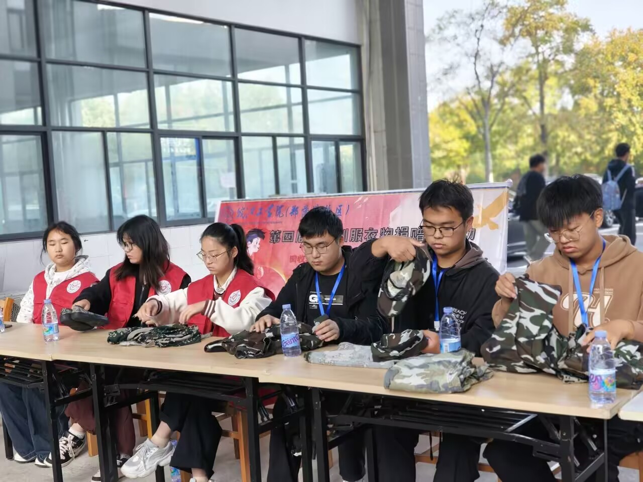 随着军训的结束,大量军训衣物往往面临闲置问题。为了有效利用这些资源,皖江工学院郑蒲港校区于2024年11月2日至3日组织了一次军训衣物捐赠活动,旨在将衣物捐赠给需要的人,传递爱心,弘扬节约精神。