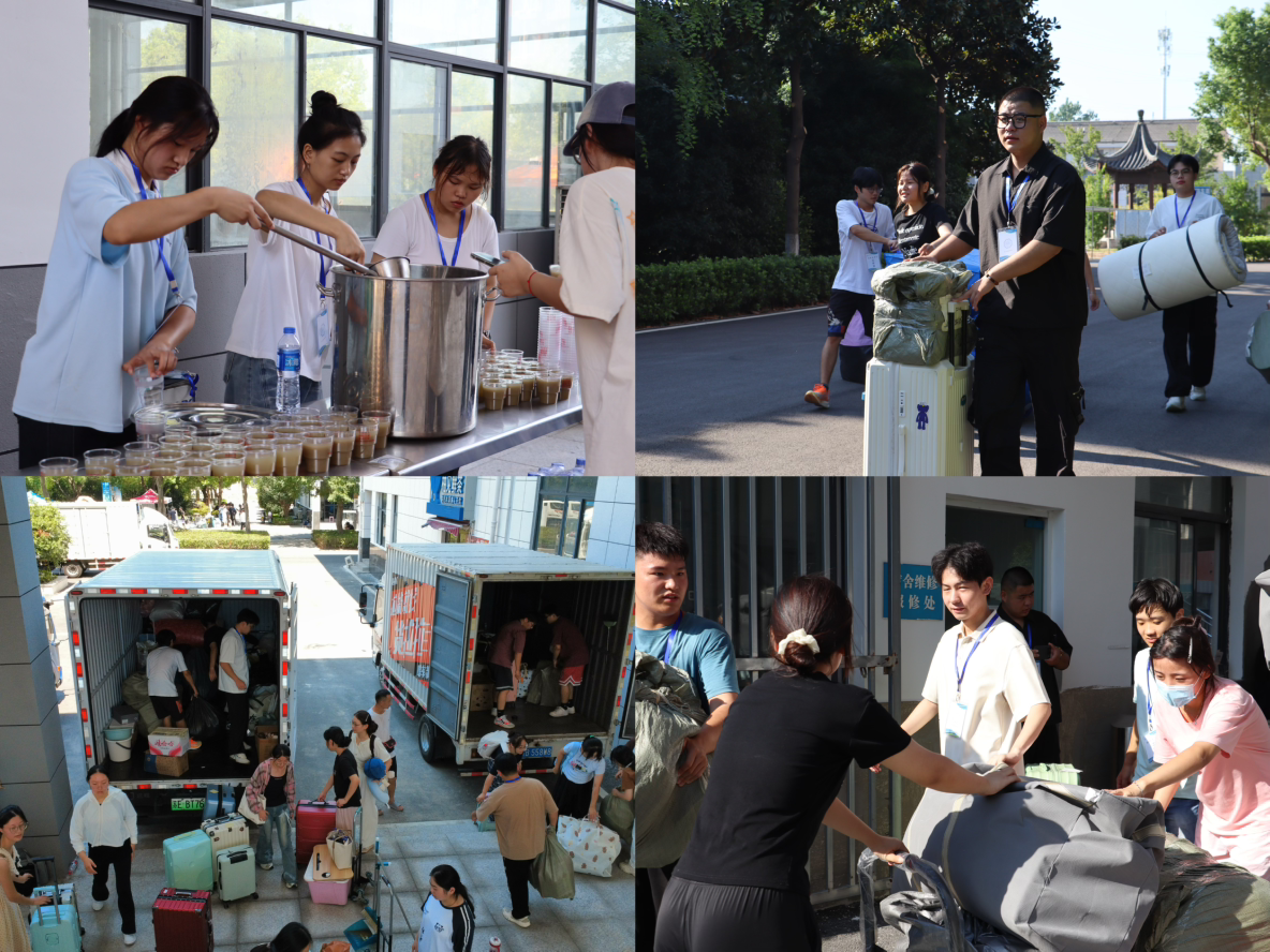 从搬迁筹备阶段,学校就高度重视,从方案制定到人员调配均进行了周密部署,为搬迁工作筑牢坚实基础。各工作组在学校统一指导下,反复打磨方案、梳理细节,确保每一项分工都清晰落地、责任到人。学生志愿者在学校的号召下踊跃报名,提前到校待命,他们带着热忱与担当,成为搬迁工作最坚实的青春底色。执行当日,在学校的精心组织下,校园化身高效有序的“协作战场”。清晨6点,首批货车悄然入校,志愿者与工作人员无缝衔接。货车组精准“对号”,守着车位等候行李;推车组往返于宿舍与货车,用脚步丈量责任;搬运组托举间,把行李化作“信任的重量”。大家对照方案反复核对,哪怕汗水浸湿衣衫,也没让“错搬、漏搬”打乱节奏,让搬迁在有序中推进,将行李安全送达。尤为暖心的是,食堂门口摆放的一桶桶凉透的绿豆汤、一瓶瓶解渴的矿泉水,均由学校精心准备。在燥热的天气里,这份带着学校心意的清凉,既驱散了搬迁人员的疲惫,更让温暖萦绕在整个搬迁现场的每一个角落。